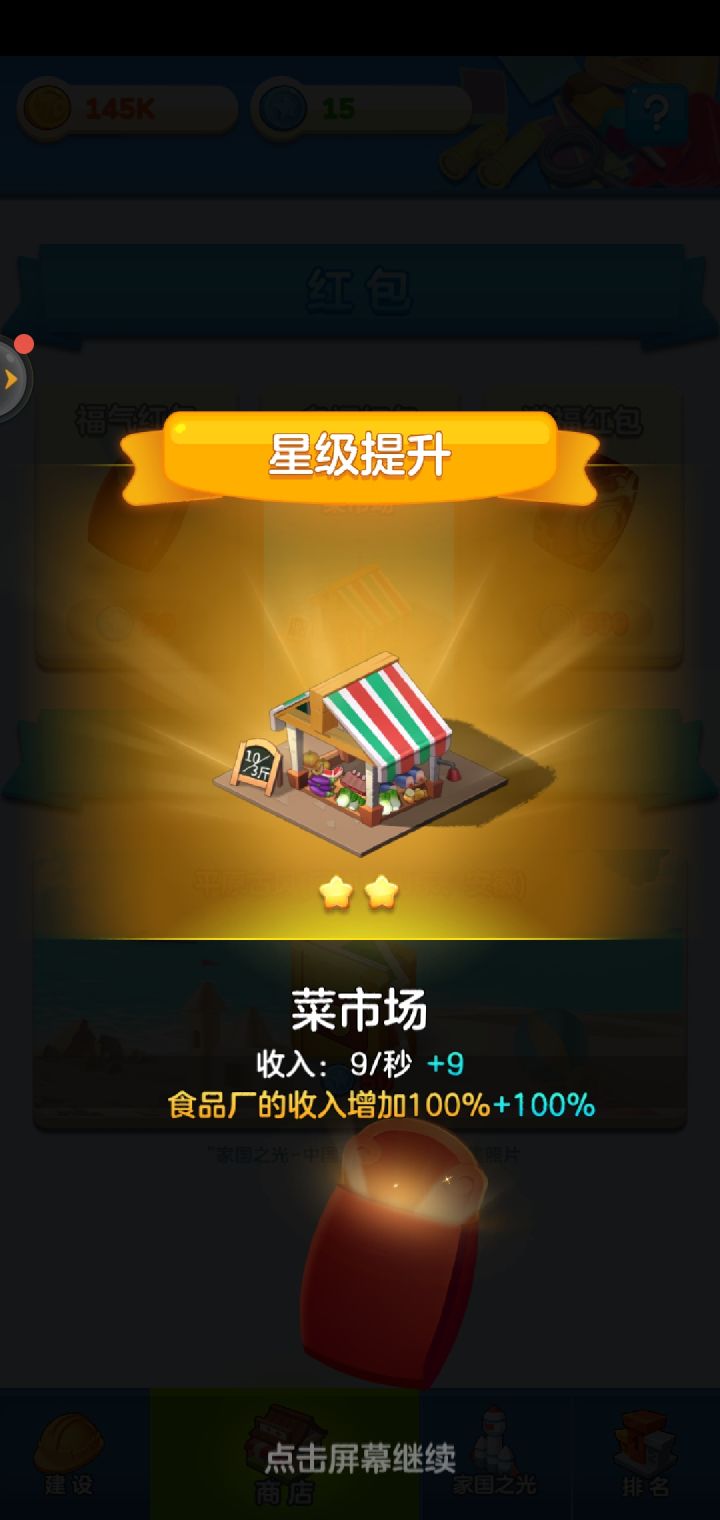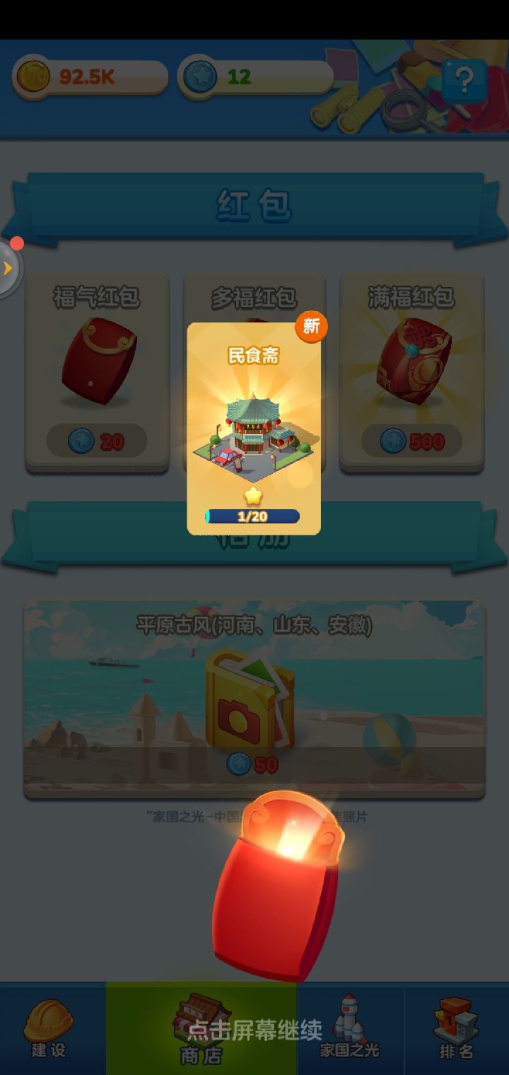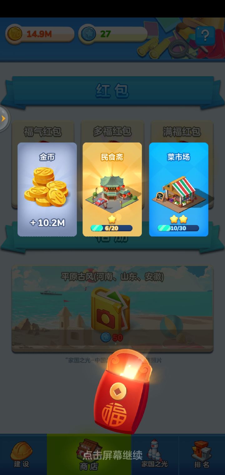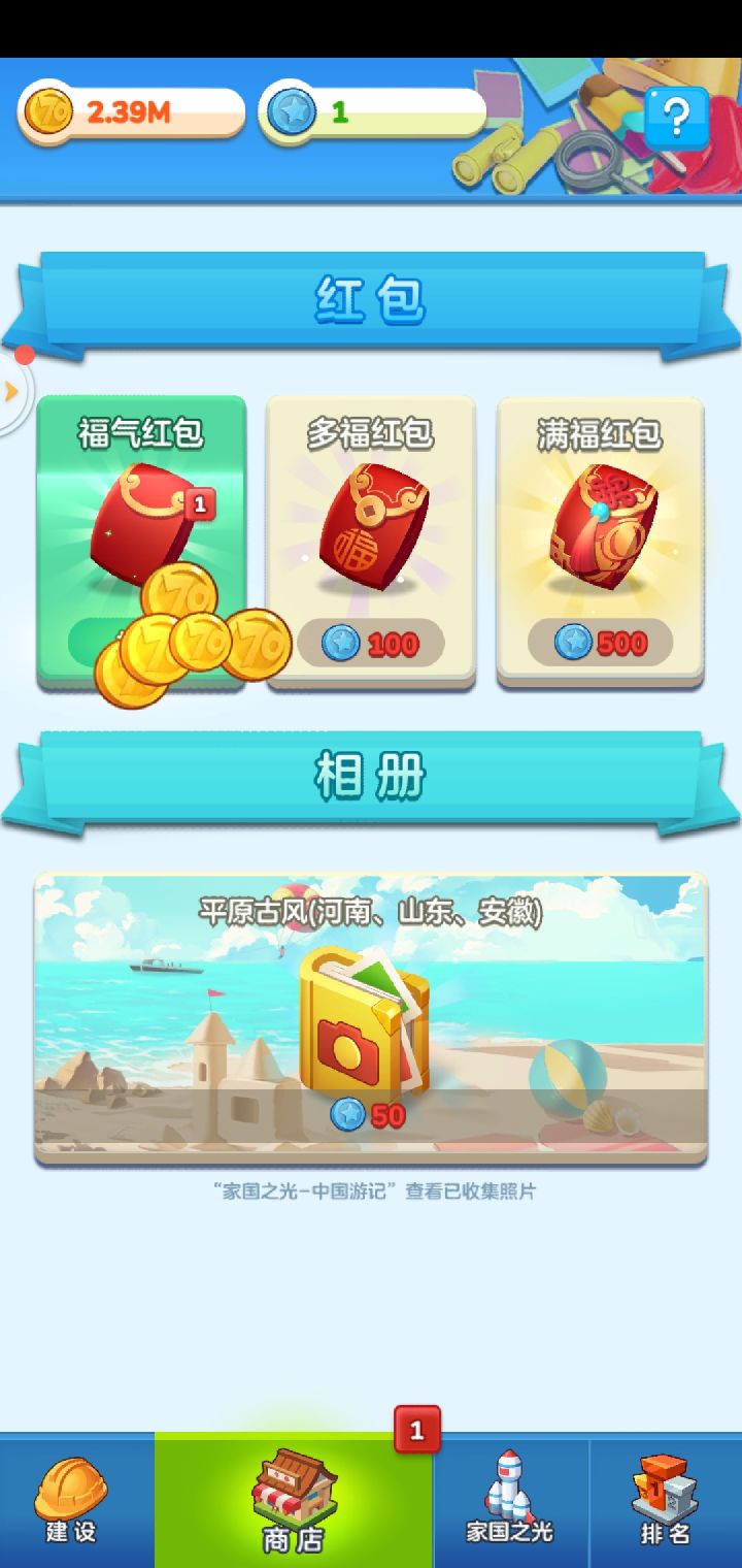 肝了两天,上图这里说一下自己玩到现在的一些不成熟总结,大家就当看看。游戏主要内容是养成+收菜类型,关键词 抽卡 建筑 搭配 政策中心 增益buff(右上角显示) 游记 火车首先,个人觉得,我的在线秒收益到1M就基本渡过游戏前期了。以下是内容:1.抽卡建造靠抽卡,蓝币除了火车、任务、开红包以外没有其他获取途径,比较珍贵,有选择困难的,对商店里的20、50、500的红包不知道该怎么选,个人前期