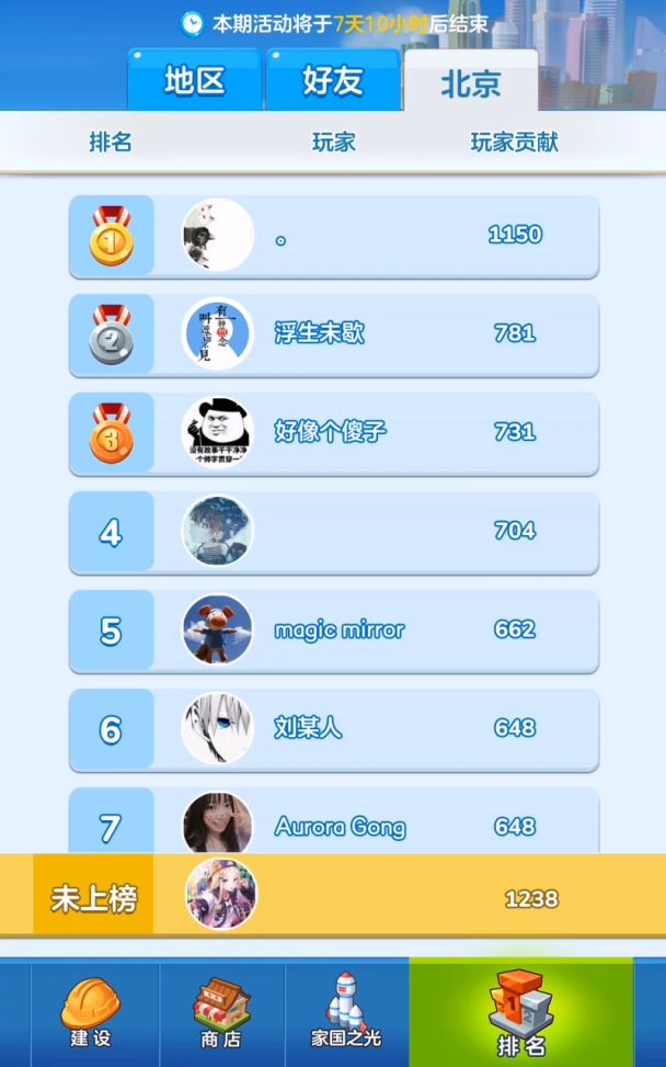 我觉得以后地区之光可以改成人均贡献,现在这个类似于总的GDP来安排奖励的对于一些玩家少地区来说并不公平。比如新疆,宁夏,青海,甘肃这些地方,截止我发这条评论为止这些地区连一级都没到,这比较打击玩家信心。推行这个游戏,如果要和实际政策相匹配,那么可以推出类似西部大开发这类政策的加成:比如青藏铁路可以给青海西藏玩家提供每天供货次数增加或者供货奖励的加成,西电东送可以为贵州等省市玩家的发电厂提供加成,西