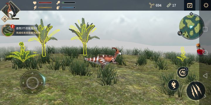 素食龙吃植物可以获得进化点这个位置刷两个加进化点的植物,还有两个加减饥饿植物普遍是水,不用为了食物水发愁,位置在这里一株植物加两点到七点进化,吃完返回角色页面,然后进入游戏你会发现植物刷新了,那么接下来就是吃植物,返回页面,进入游戏,一直循环,一分钟260+到400+进化点,看手速,另外作者大大求别和谐这个bug,素食龙很苦逼的有木有求放过,各位觉得有用的帮忙点赞。