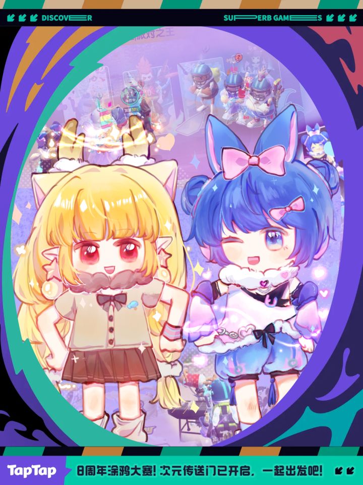 TapTap八周年快乐鸭!一起跟随肠肠的脚步去为TapTap庆生吧!(其实感觉彩虹岛的草地配色有点深,跟人物有点不太搭,寻思着麦崖也是彩虹岛的吧左下角的手应该看得出来是谁的吧天啊,要求添加两个活动,可为什么我不能同时添加。。。#TapTap涂鸦大赛