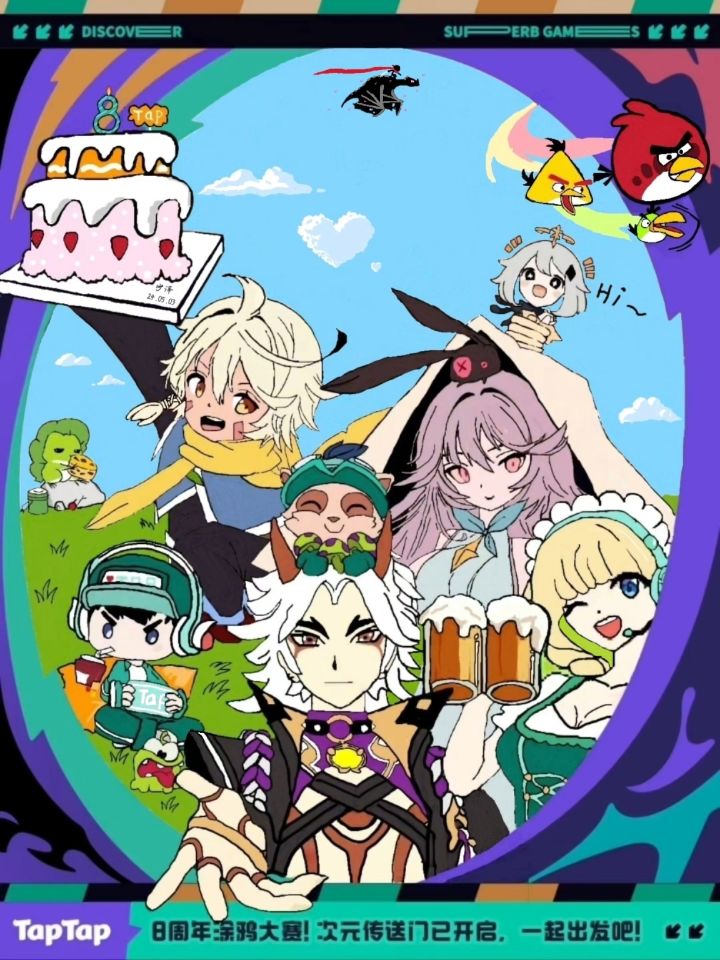 ✨TapTap,🎉八周年快乐!🎊🍀八年时光,往昔皆难忘。把我喜欢的游戏都绘制在一起,传送到游戏世界,和伙伴们再一次踏上难忘的旅途~Let's go!!!#TapTap涂鸦大赛 #TapTap8周年