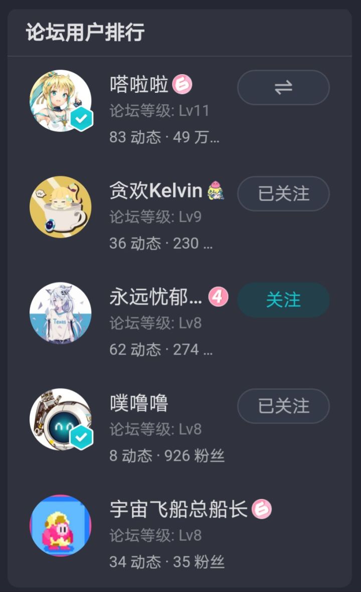 web端的嗒啦啦的家论坛用户排行变了……我挤到第五了芜湖!接下来要……把噗噜噜挤到第五名!挤到第二名当嗒家最强水怪!挤到第一名直接篡位!