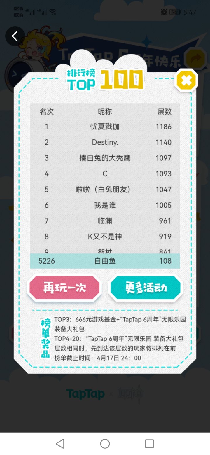 #TapTap6周年快乐#TapTap生日快乐话说为什么没中。。。榜上这帮大佬是真猛上千层,NB了