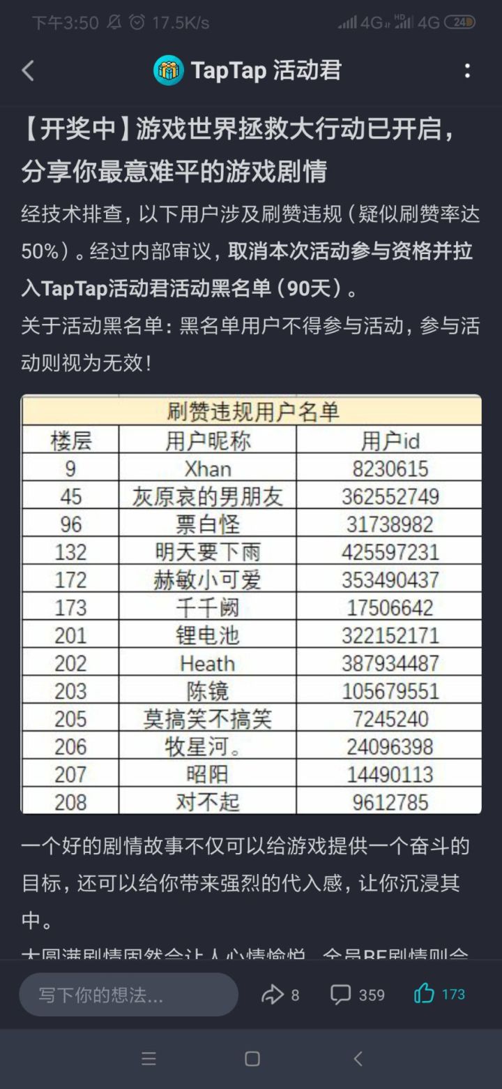 我是一个tap老玩家了,也是比较早的一批玩赏家,一直以来对tap的感触都很好,也很愿意在tap创作和分享,哪怕是用爱发电,没有任何收益。从2018年9月4号开始,到2022年3月28日,我一共发布过134条评价,除了极少数评价质量欠佳,其它每一条评价我都写的非常认真,真的是全靠热爱去做这些事情。后来tap有了活动君和优质评价君这样的内容,虽然物质奖励不多,但是对我们来说却是是一种激励,因此鸽了