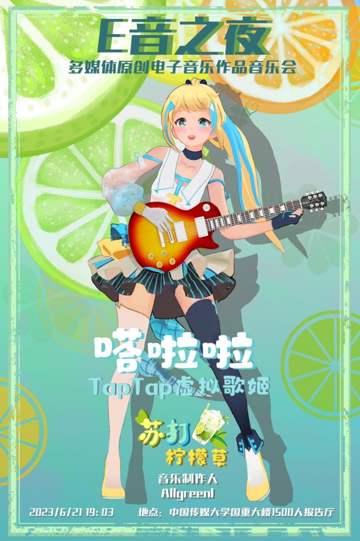由我创作,由@TapFamily嗒啦啦演唱的歌曲《苏打柠檬草 Lemon Soda》即将在下周三晚上7:03在中国传媒大学多媒体原创电子音乐会上演。届时嗒啦啦也会登上舞台。这次音乐会将在@中国传媒大学 官方bilibili账号进行直播。同时可以关注“E音之夜”公众号获取更多前瞻信息。敬请期待这次表演!#二次元#原创#TapFamily#TapTap看板娘#嗒啦啦