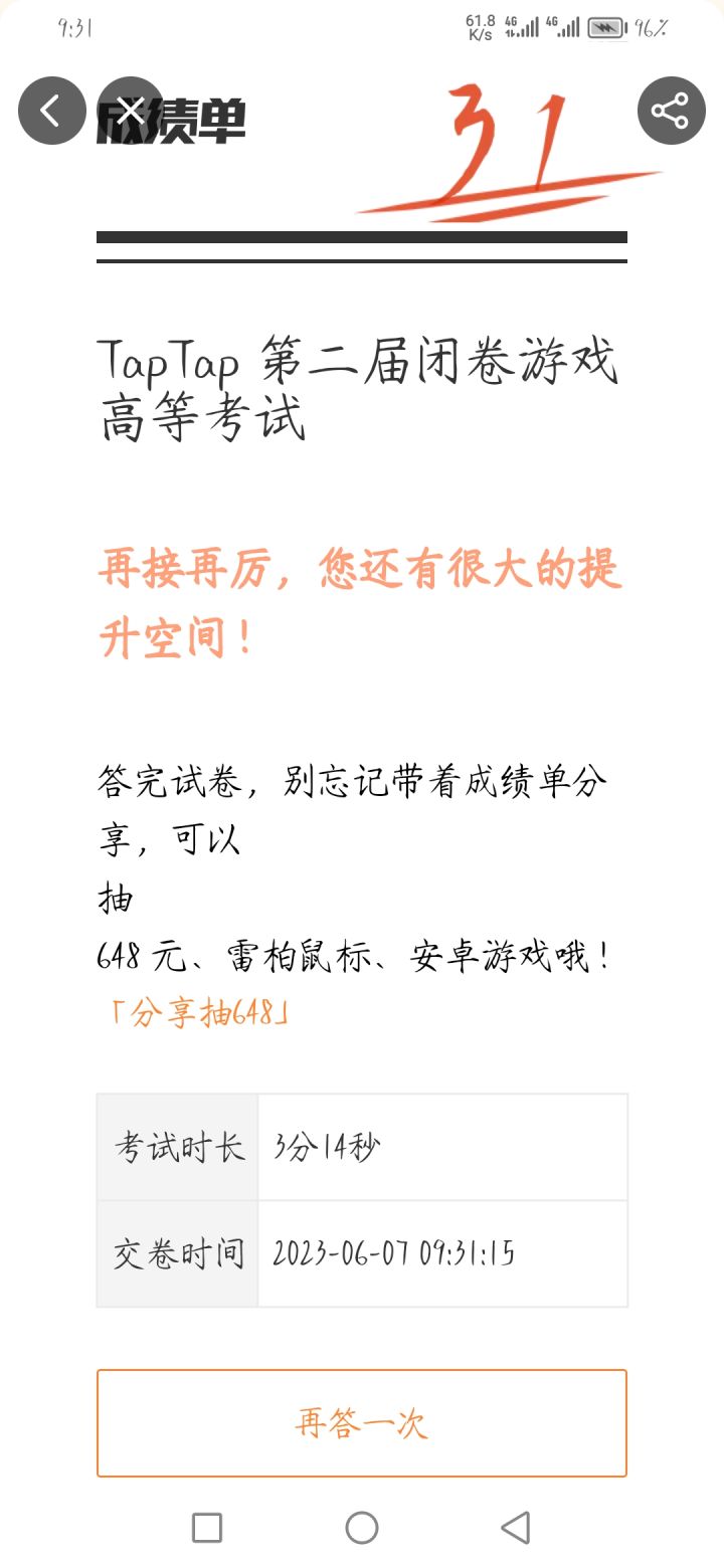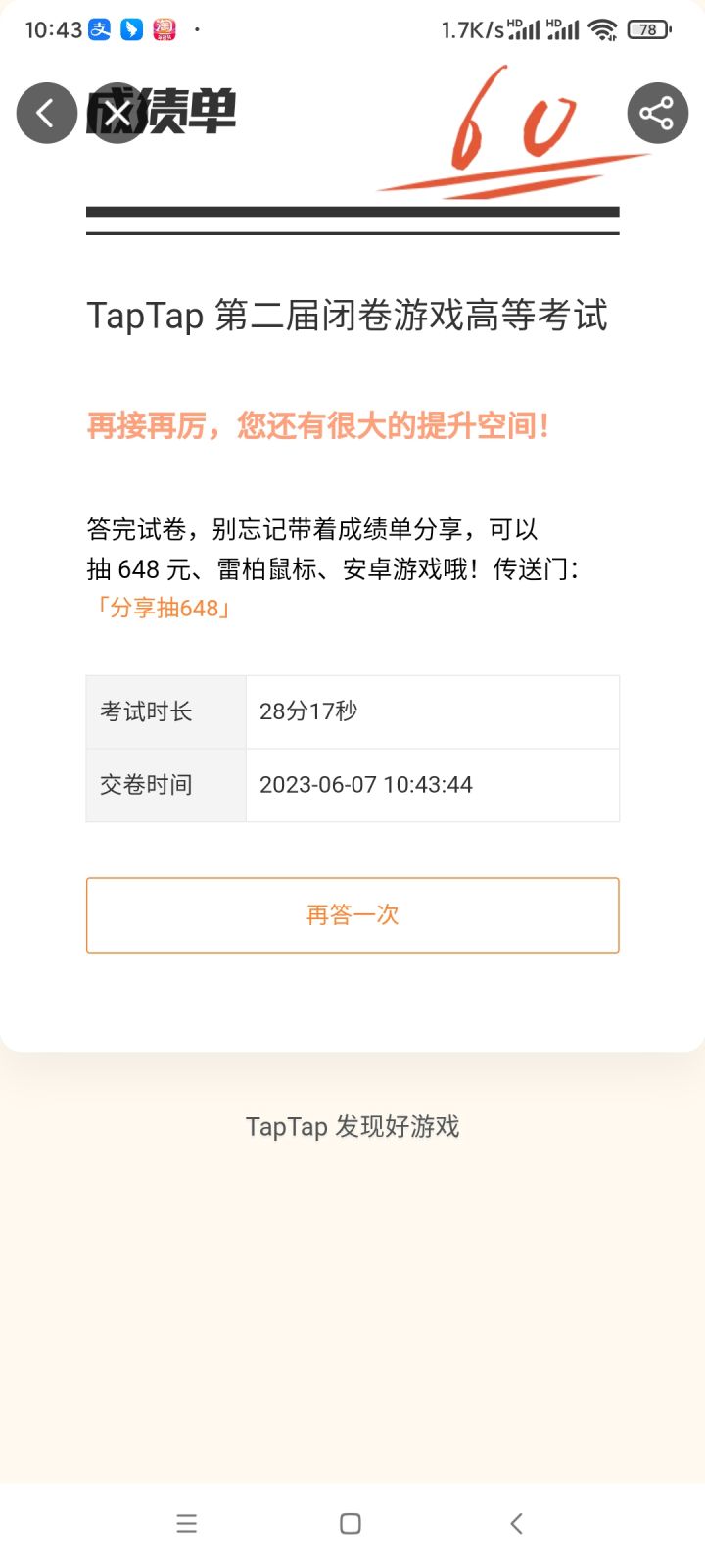 第一次照片没保存有59分差一分及格后面再答题就只有30来分了#TapTap 游戏高考#TapTap游戏高考