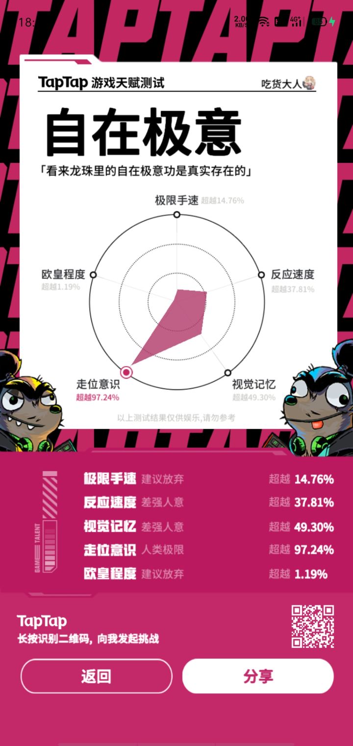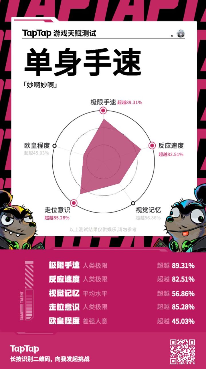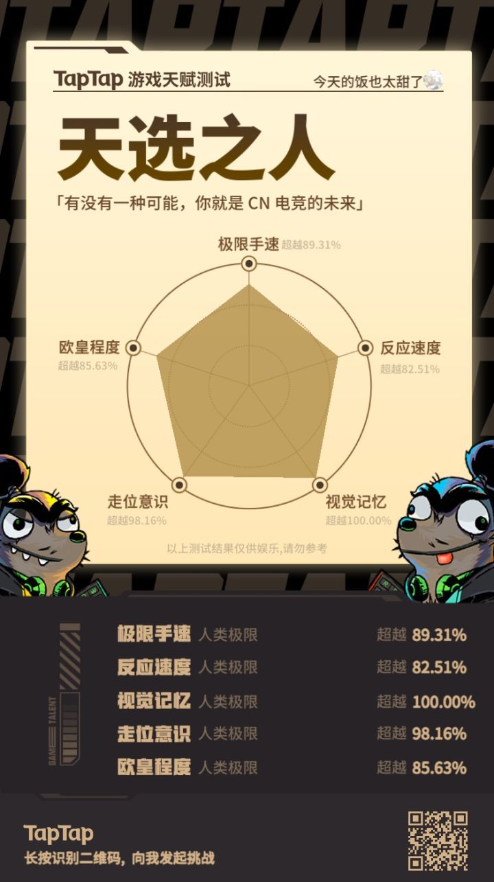 蹲了半小时,玩了半小时视觉记忆,一下把我手机干的快关机了,幸好在快关机的状态下参加上了活动。唯一一项百分百达成#TapTap 游戏天赋测试