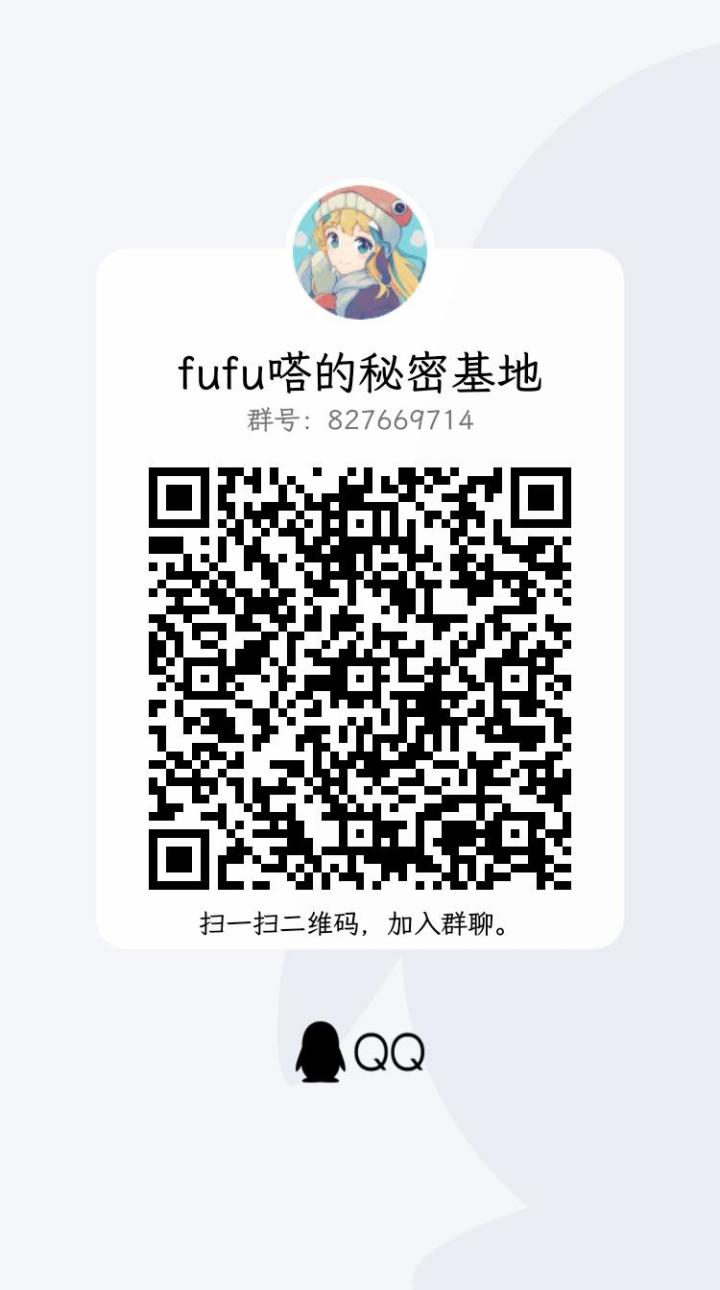 朋友们,我建立了一个fufu嗒的通知群,未来的进度以及各种事情都会在里面说,希望有购买意向的小伙伴加入,我也方便统计人数