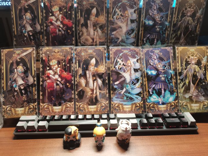 来来来,开箱! 这套是「嗒罗牌」的前六张,「游者万象」系列的实体卡:愚者(0),魔术师(I),女祭司(Ⅱ),皇后(Ⅲ),皇帝(Ⅳ),教皇(V)(草,才发现图片里的顺序放错了,以后再改改)卡背公开! 其实我一直以为不会另外做卡背(纯白背面的嗒啦啦挂件.jpg),没想到做得还这么精致,神秘感max每一张牌都有单独的卡套,既能很好地保护卡牌,也可以很方便地取出~整张卡挺厚的,不容易折,套