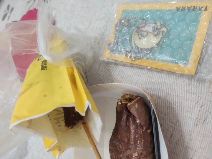 真开心,今天发工资了然后收到了上次中奖的挂件,嗒啦啦真可爱,烧烤还有烤红薯也好吃,生活会越来越好的😆