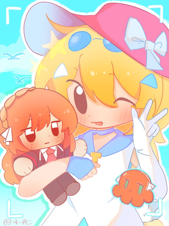 左边嗒啦啦抱的玩偶是“以实玛利”因为感觉跟(海边、夏日)主题很贴合就画了!都是可爱宝子!话说现在不已经是立秋了吗(小声)#嗒噗同人 #夏日回响