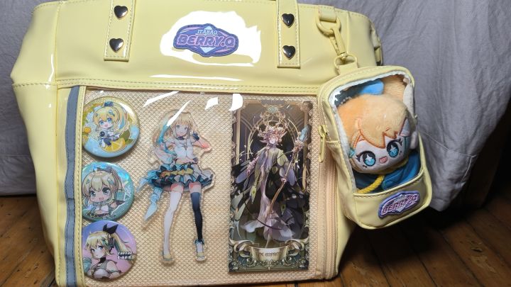 很草率的扎了一个痛包斥巨资买了一个很贵的痛包再约了一个嗒啦啦亚克力替代初代立牌(初代立牌绝版了不敢拿原周边搞)再拿了嗒罗牌粘了上去(永久性损伤)如果没拿到嗒罗牌全套也不舍得粘上去之后拍正片的时候当道具用,平常也不敢拿出来