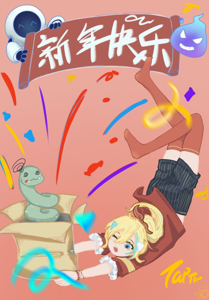 大家新春快乐!我的新年愿望是父母身体健康,小猫健康成长,攒钱给小猫们绝育,希望新的一年我能够事事顺利,心想事成,好运连连!同样的祝福送给大家!我目前的程度不太够,所以调整了一下明暗关系,显得不那么脏#TapFamily #嗒啦啦的家 #嗒啦啦 #嗒噗同人 #新春万象绘