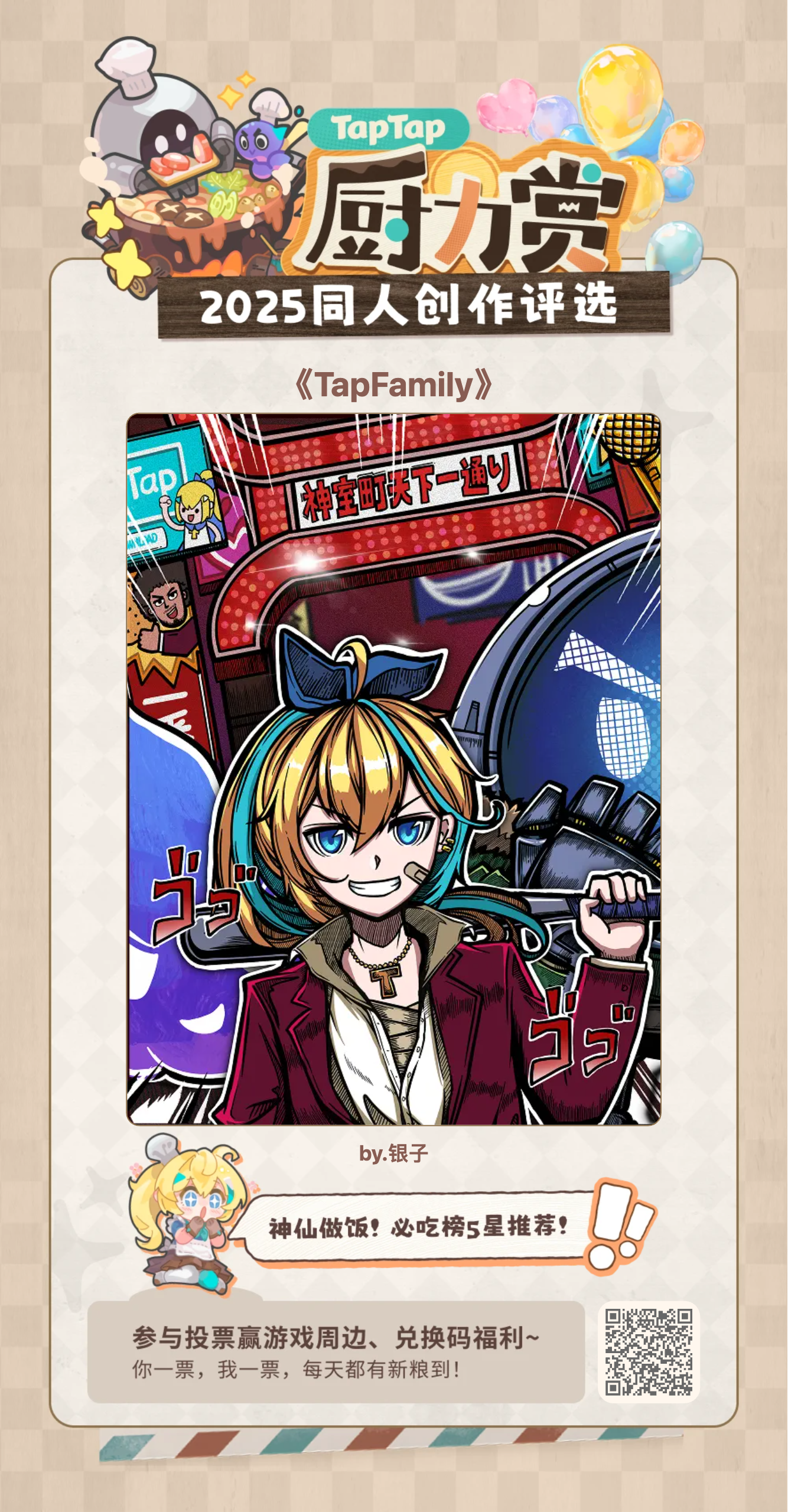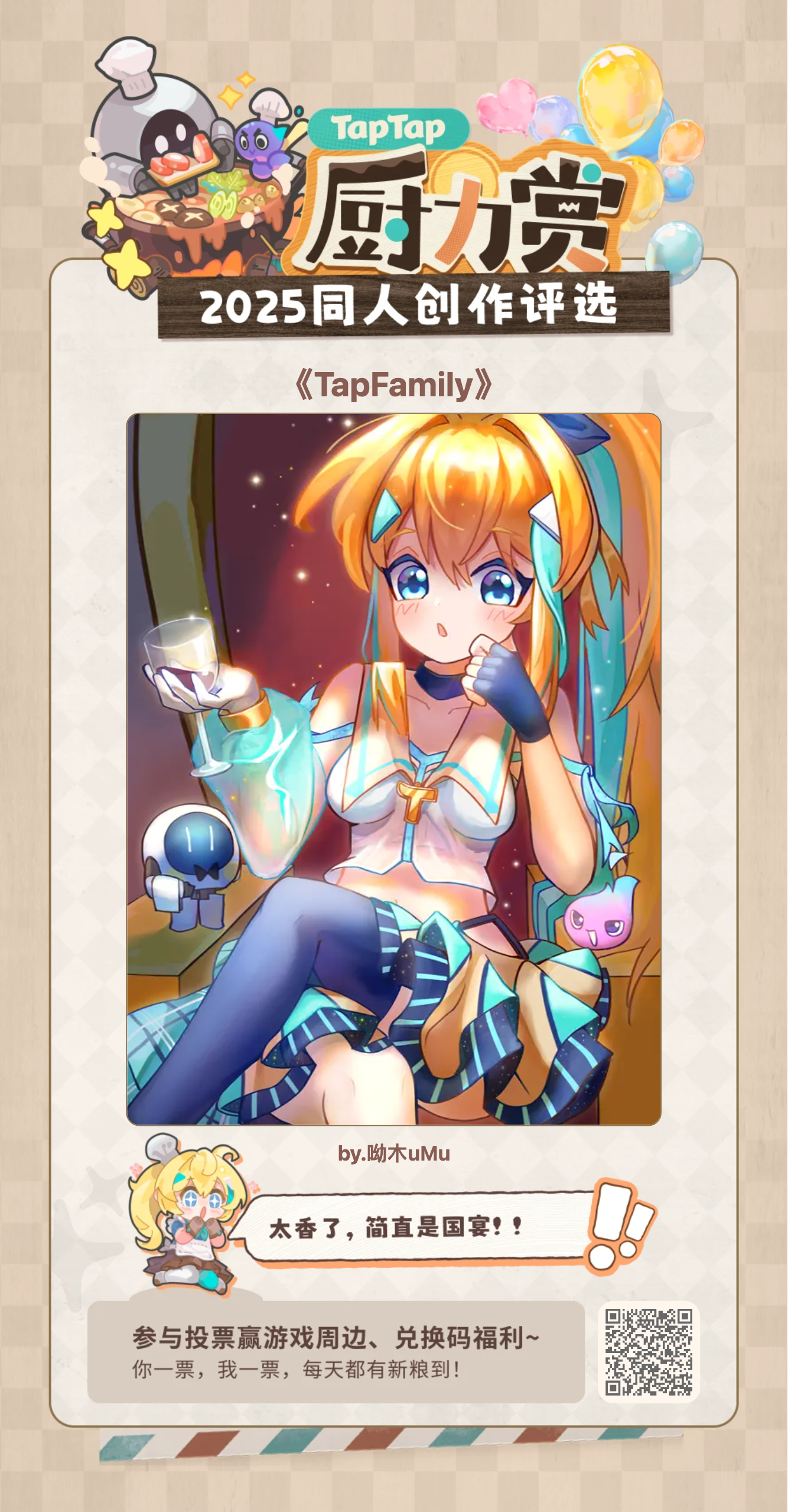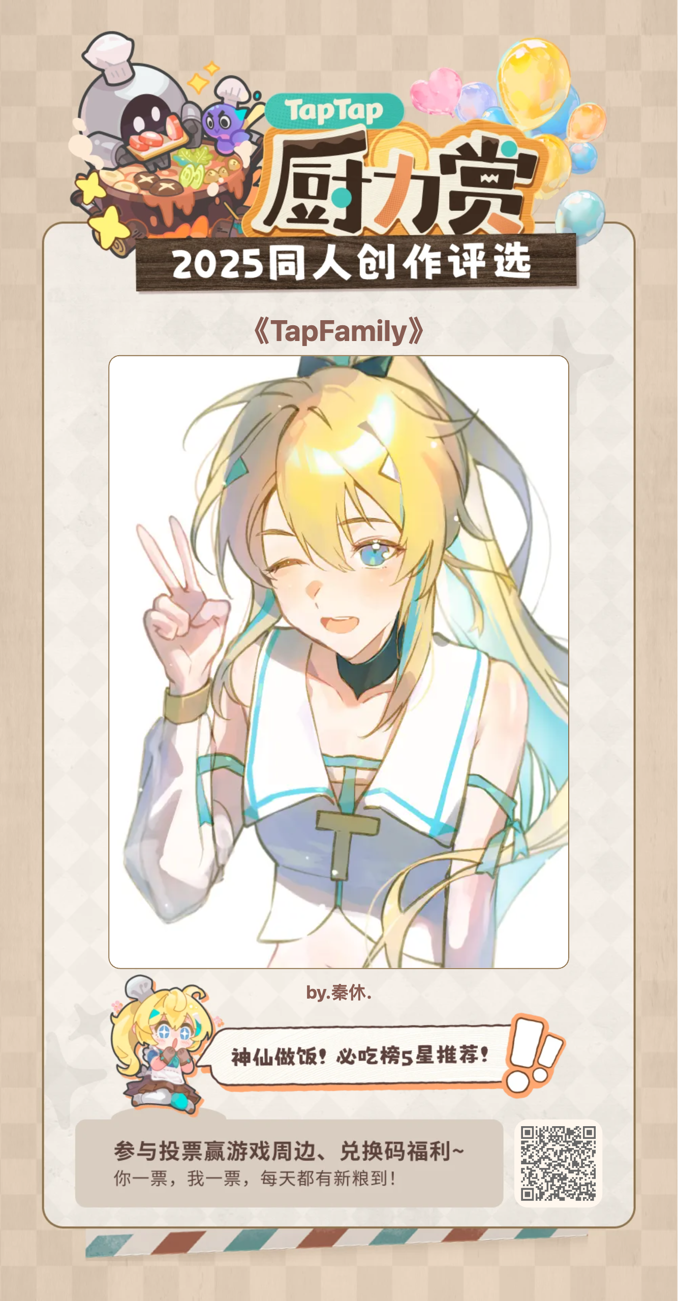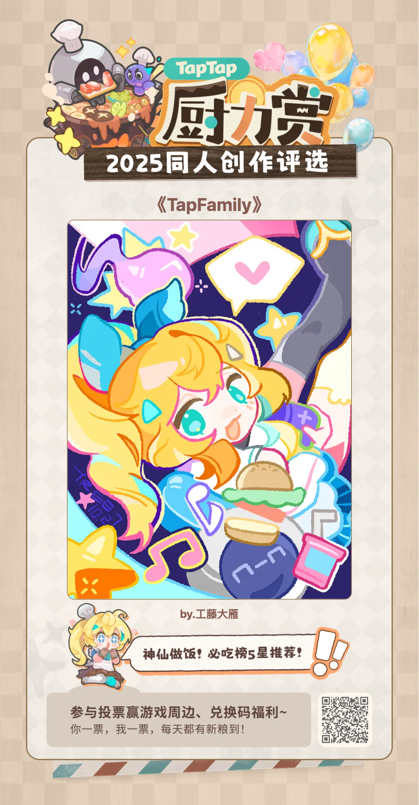 神仙做饭!TapTap必吃榜5星推荐噢~欢迎大家走过路过~都来吃一口!(*`∀´*)ノ友情提醒~投票明天就截止啦~敬请期待~美味厨神的诞生吧!#TapFamily #嗒啦啦 #TapTap厨力赏2025 #嗒噗同人