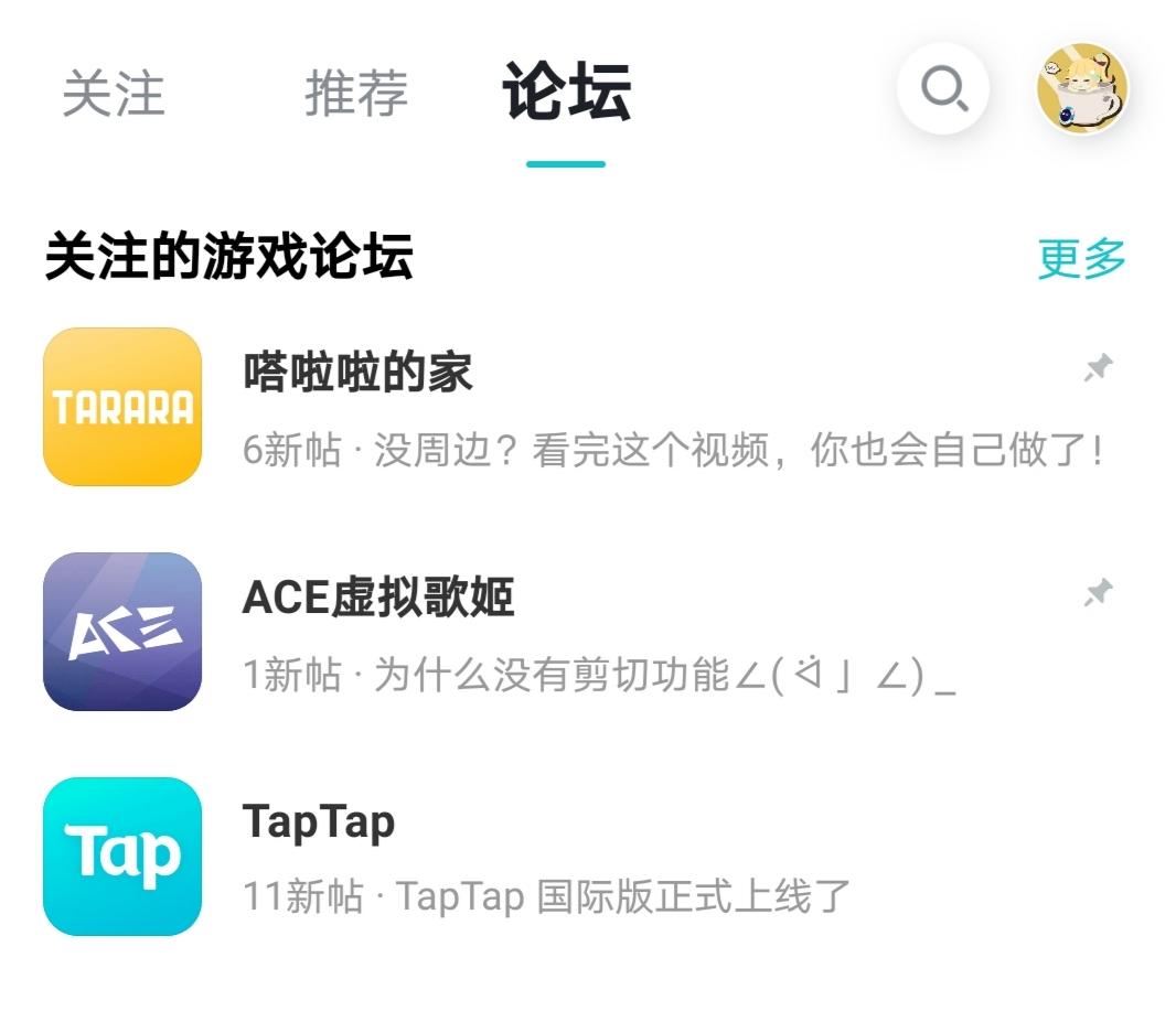 我在TapTap关注的三个游戏论坛没有一个是游戏
