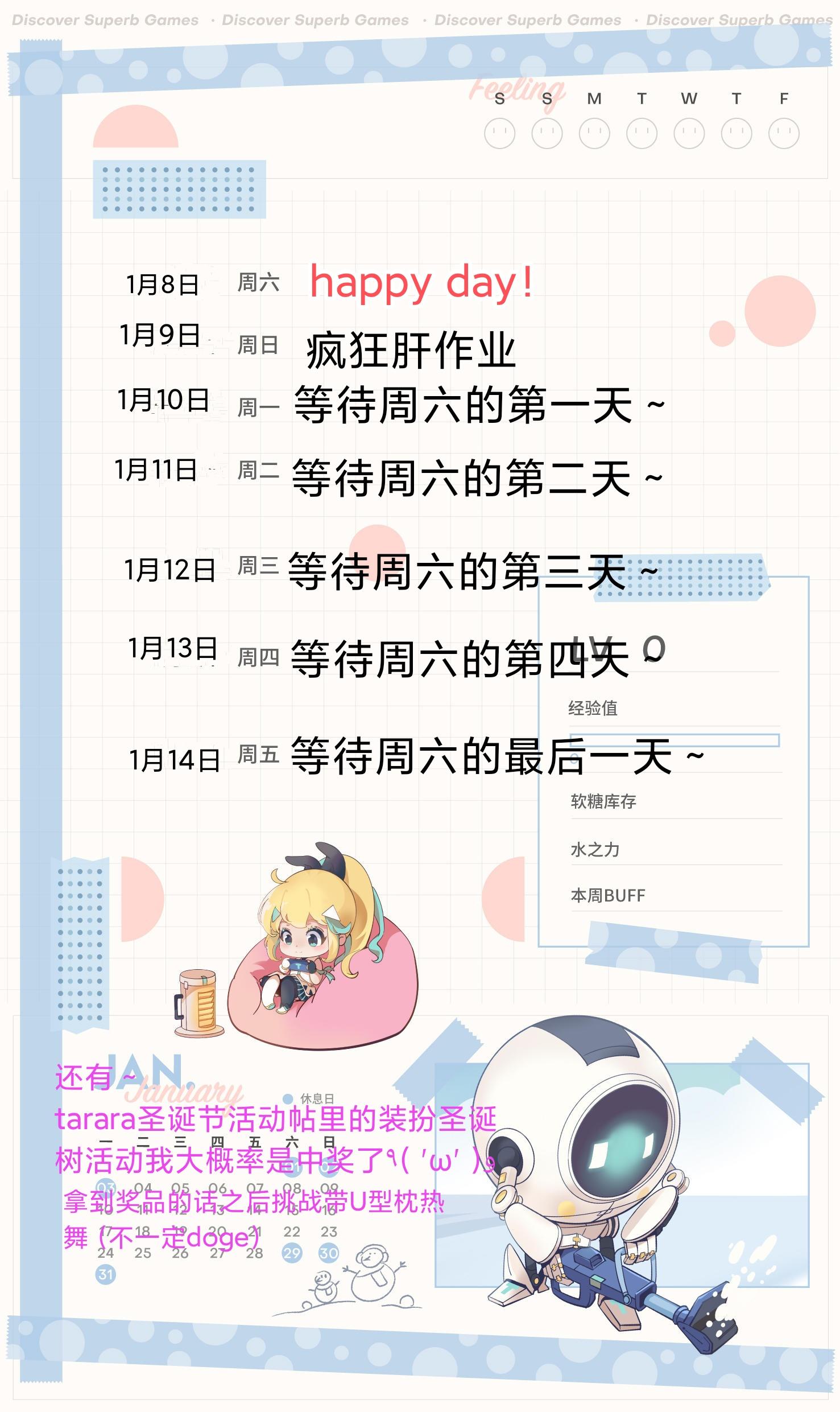 既然tarara潜水了两天,闲着无聊把下周的日程表也记了