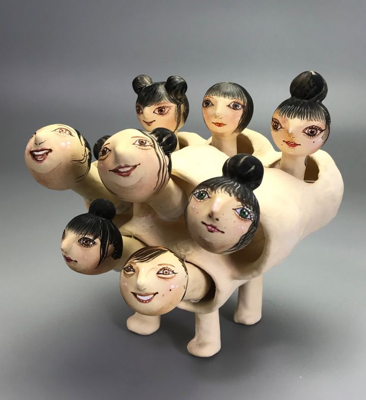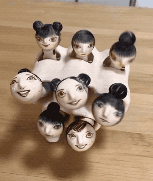 纸塑制作人 はりこのはやしや 制作了一个八岐少女摇摇乐。如果将横向的摇头和纵向的摇头组合起来,那么每个人都会可爱地摇摆~via twi harikonohayashi #游戏迷惑投稿