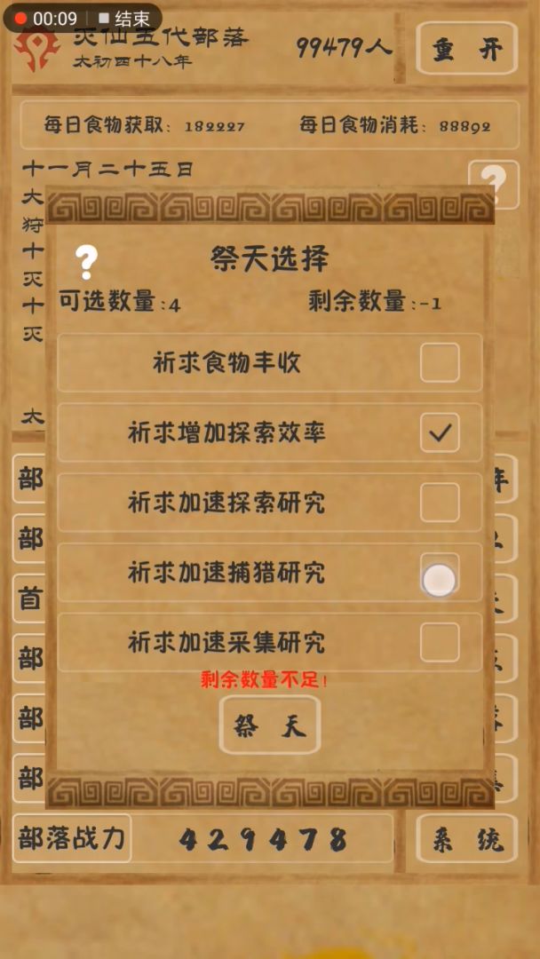 ①如上图,不规律出现。点好的无效,重开可以,退出重进依旧是这样。②不知道是探索机制出问题了还是我脸黑,太初25年开始堆探索,太初35年20万人加祭祀时勾选探索效率,到太初48年就遇到了2个巨型部落。后面更是连续8年没有遇到过巨型部落,是不是我要删游戏重来~~我见到反馈帖有不少同样问题却不解决,是什么意思