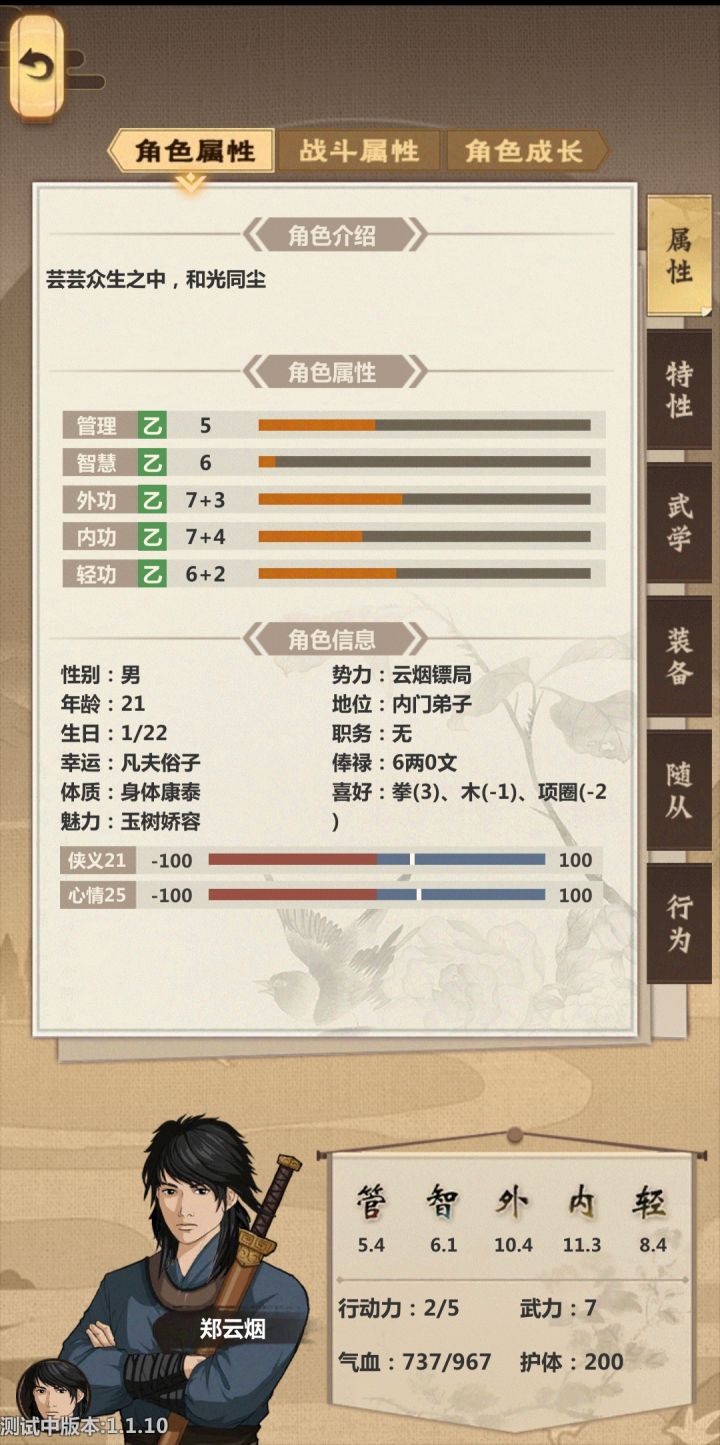 原来 讲武堂那些外门弟子特性是随机的。我试着看看什么效果。。sl回来发现变了。。。。可以sl的原来