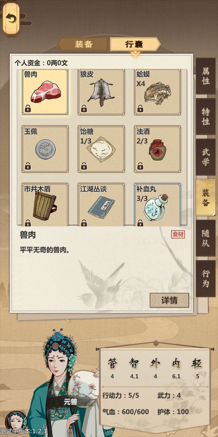 新手村是完全独立出来的一个地方想要赚钱自然少不了hmTip:hm=home=save log=存档重读,也就是刷新生成,掉落的道具想致富就多度几百次档吧(bush)为了写这玩意挂了次树www还特意组了凡夫开局(其他的点了幸运和家里有矿,不过hm=幸运拉满,幸运高可以少读几次www)为了增加硬实力,有架就打,有钱就拿。途中所有的秘籍不要学,留着放帮派充公。开局先看初始道具,背包里的