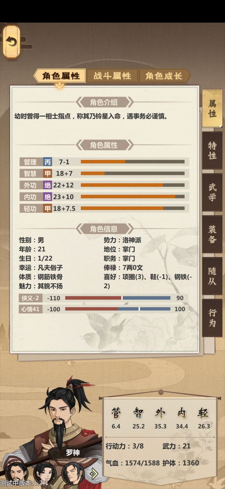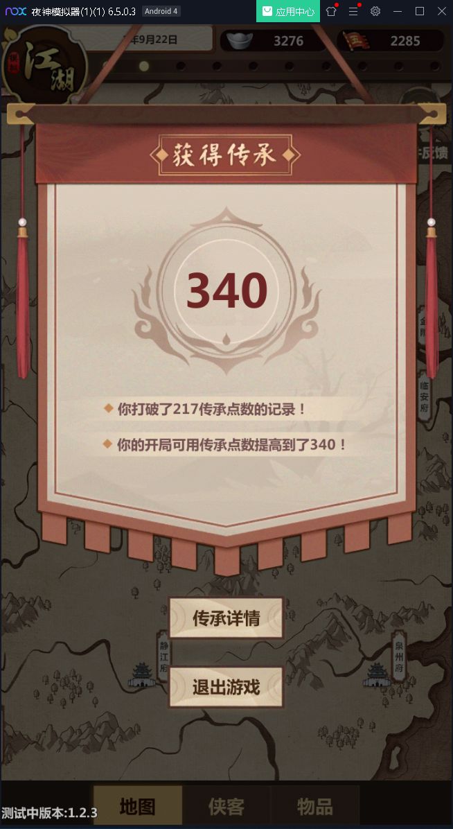 经过8个小时的努力,1.2.1版本终于打通关了,340传承到手(3w钱和2200+声望),听说后面会有大版本更新......讲道理我是不想肝了,要是游戏延长到了12月那还有的玩hhh213传承开局,三才玲星矿洞武器,新手村乱打出门,刷出金矿麦田。药堂的医术2和3无太大区别,懒得刷的玩家2也不是不行。但是工匠3是必须的,2不大行。假设你的工匠2智力高,每旬有药或者江陵府农贸市场的加行动力馒头