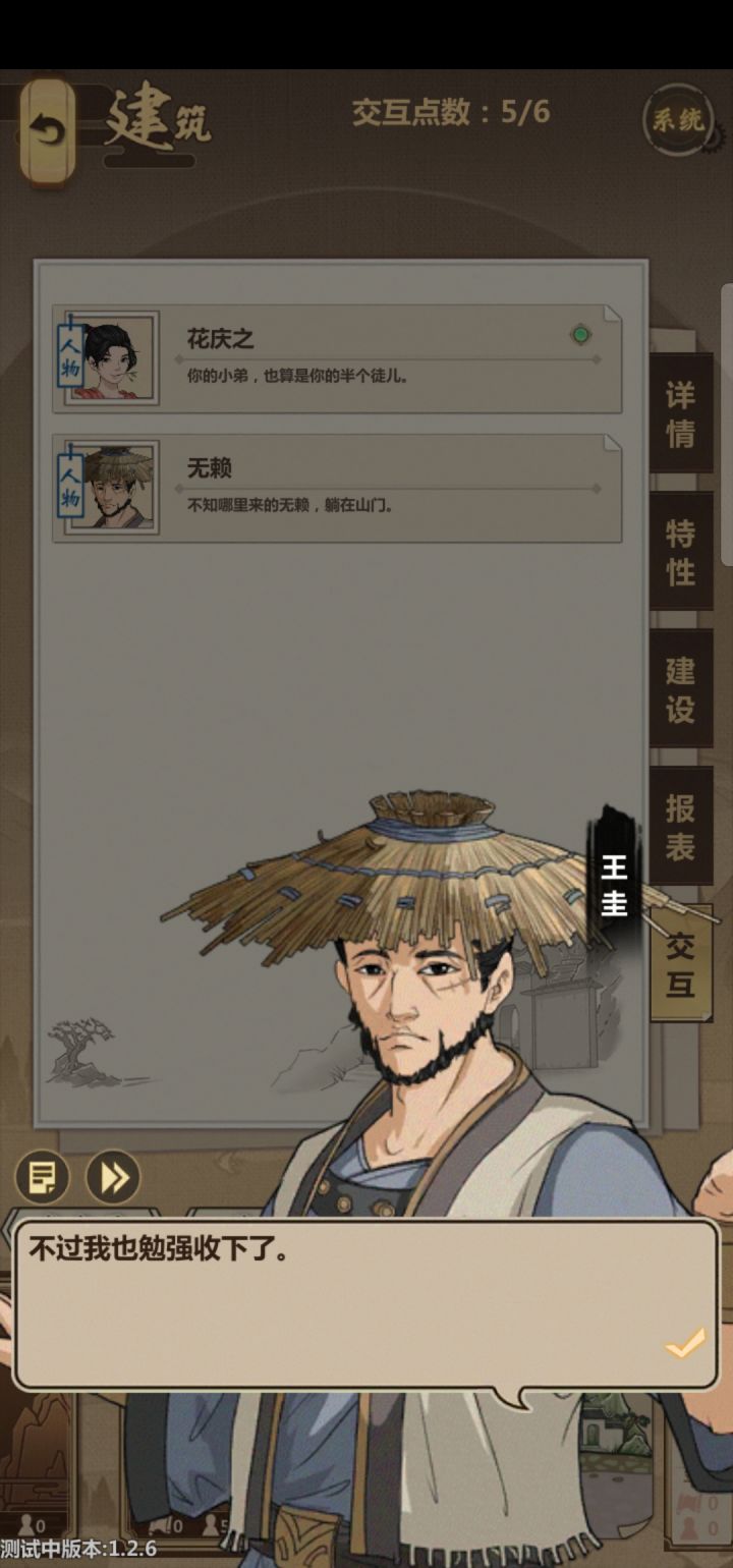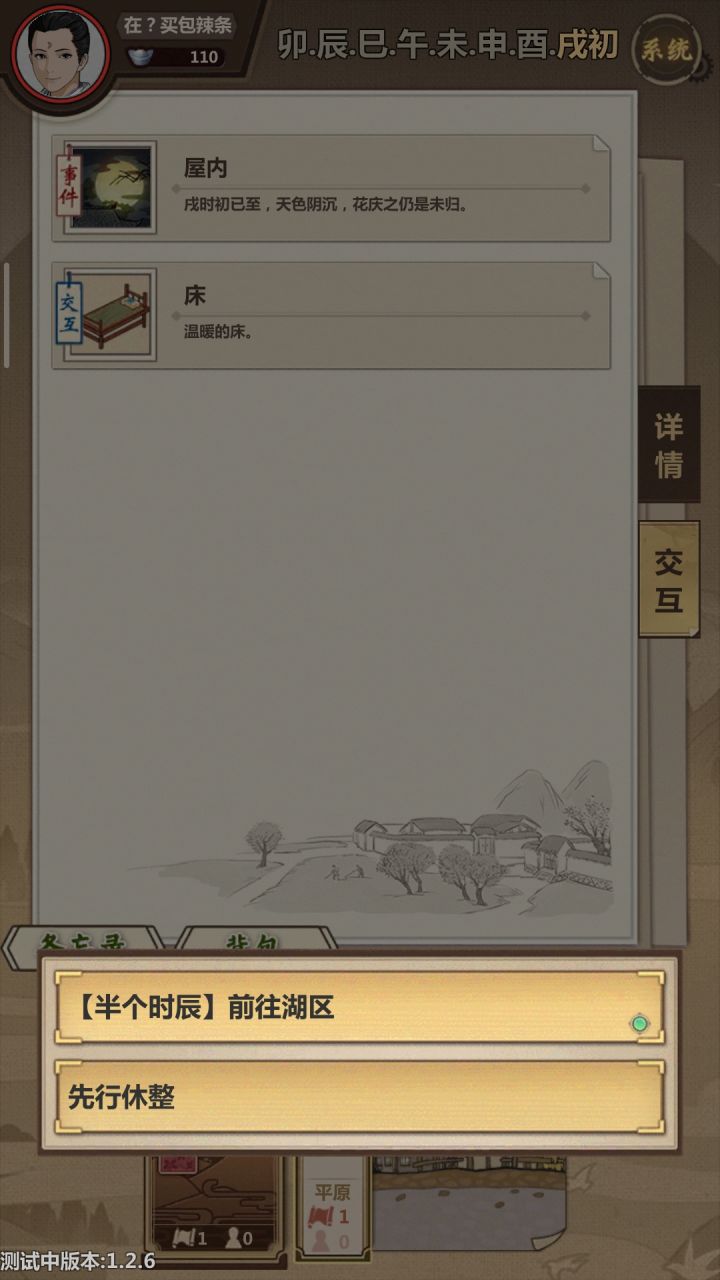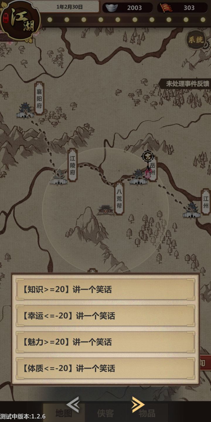 几点小bug1.主页面没有系统入口,每次想存档都要先点开周边这些2.打架的时候主角走位太风骚,有时候那个角落都没人了还在那里瞎转瞎刺3.卖货一次不能买太多?走商的时候买了所有的马最后卖的时候剩两匹卖不出去,显示超过支付额度,卖东西也有支付额度,在村里的杂货店也是