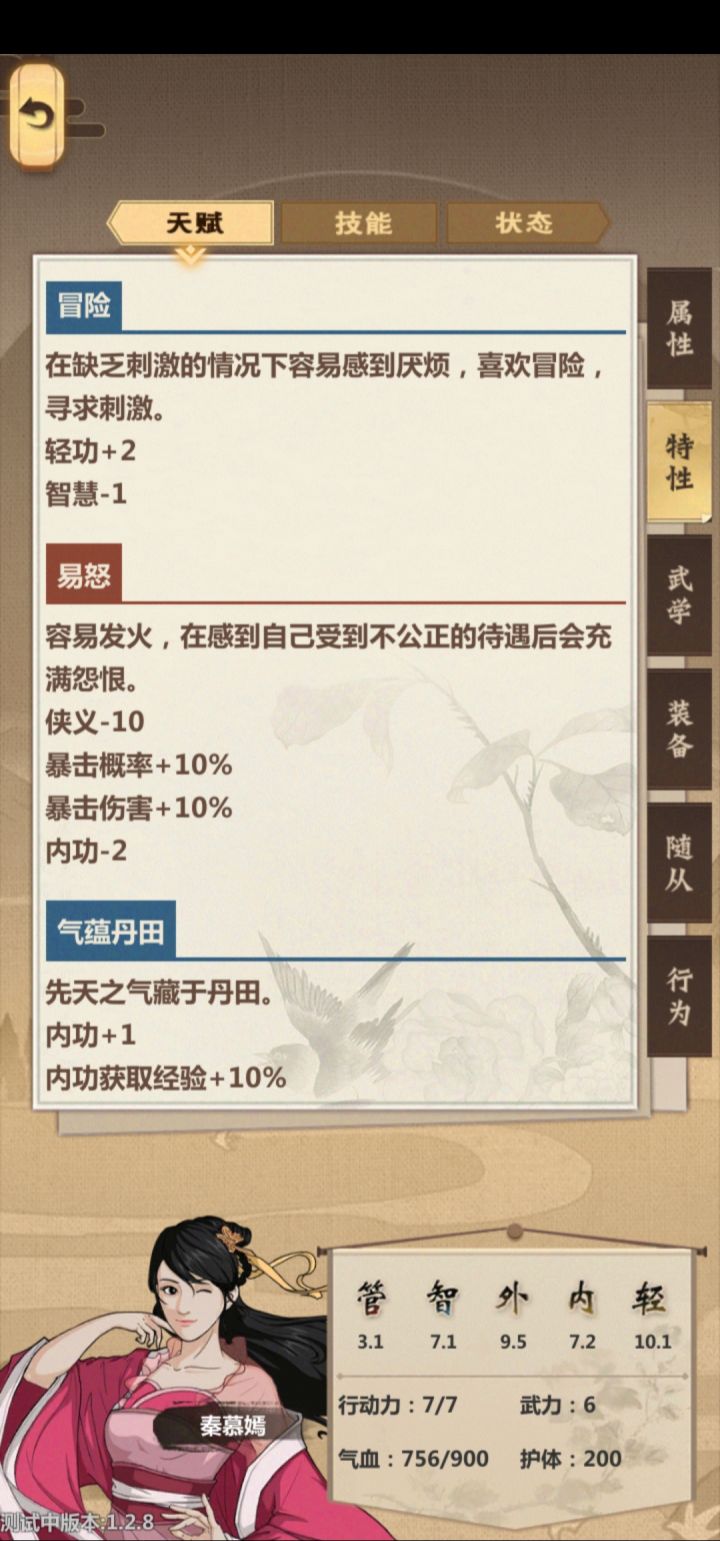 招募的弟子和游师兄派去工作,一个采集一个学习务农,直接3点行动力变一点了,什么情况,肯定是BUG. 我看了侠客行为的,没有外部影响行动力!