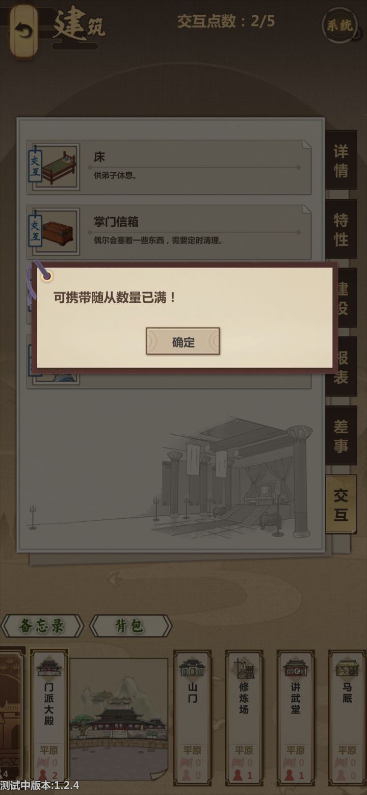 在玩到门派后如果连续点击每个人的招随从会出现以下图片的情况并无法点击消失一直卡在这个业面