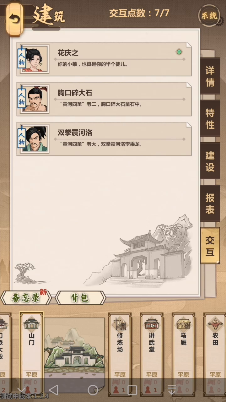 1.夫子的晚课上完了过后,我的人撤不出来了,差事里面晚课那一栏直接消失了,我上课的人被永久扣了2点行动力,现在我的工匠3只有一点行动力了,我人傻了。2.还有后山最后的怪人,第二波战斗失败过后得死亡一指把我游戏打穿了,主界面直接卡住,点哪都是异常连接,然后重登游戏。
