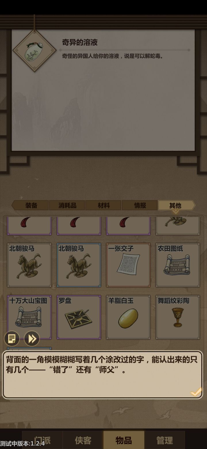 分别是:吃饭不给钱让我付的小黑妞寺庙闷骚小和尚药童的师姐少妇白洁(芨)以上三人在酉正集市烟火会结束后会出现,而且只有对话没有事件。(剧情写的还挺好,表扬一下开发组)各自触发剧情如下:1.小黑妞不多说了基本都有。2.小和尚要在寺庙香火会后一时辰,应该是午初时,对话选择留下吃饭,后续有个智慧判定的剧情,成功了酉正就会出现。另外门派阶段小和尚也会来玩一下,似乎没有后续剧情。3.白洁的条件