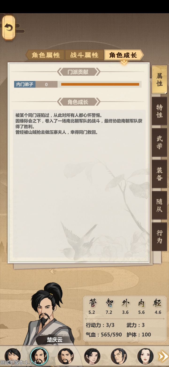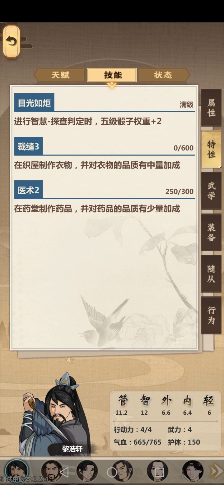 自己打出来的档,中途遇到一些bug如打完南城帮后执行驻守差事的弟子不能够再进行习武,采集,挖矿等差事最后声望六级以后说可以开成都地图,然而衙门那里没得卖地图我还以为要买一个才能把成都补上来,结果也不行结束时的外功应该在38点以上,培养了四五个打手可惜作用不大,总体来说到七月以后就没什么能玩的了,扩建加扫墓就开始游侠
