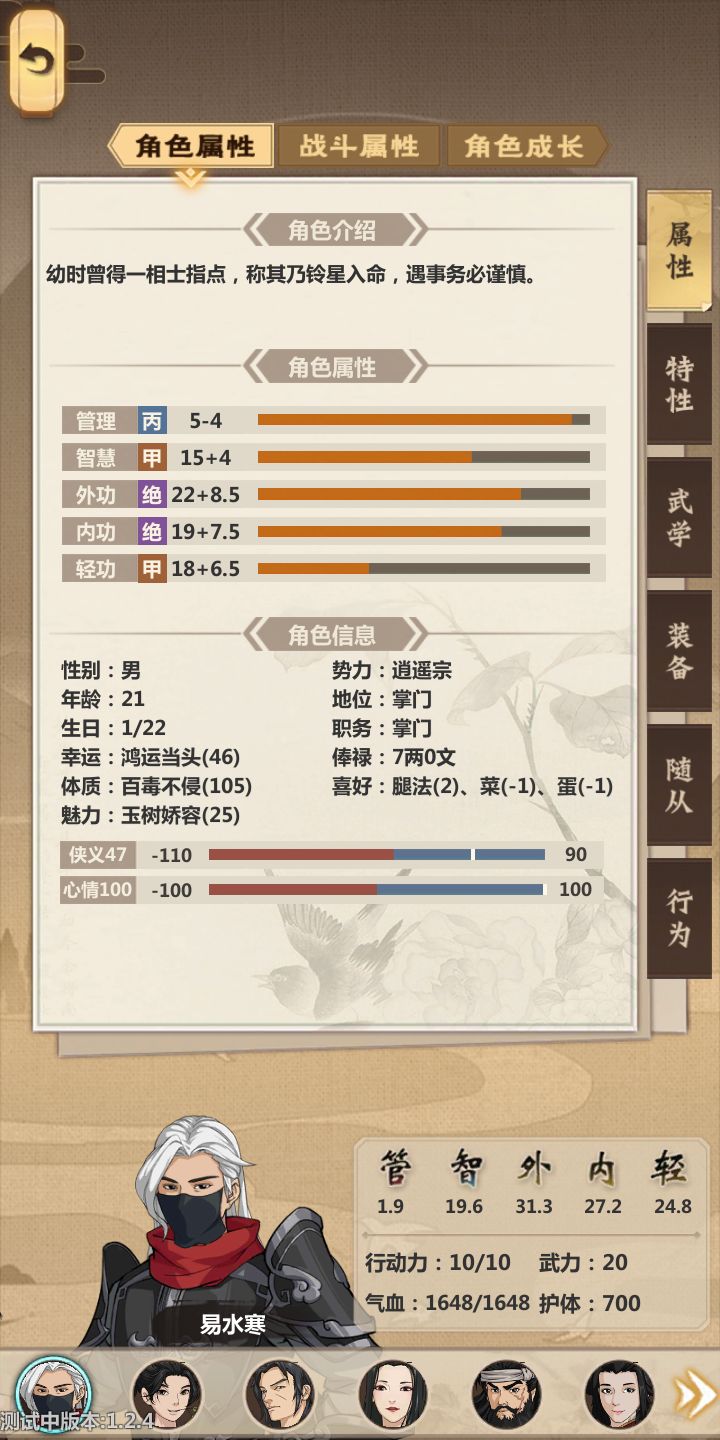 今天船新版本,听说商店bug再现,然后光顾着赚钱和刷武学没有探索新内容,后悔那几个新人物都没开出来商店刷了两千两以后索然无味,武学大概拿了四人份的就没弄了