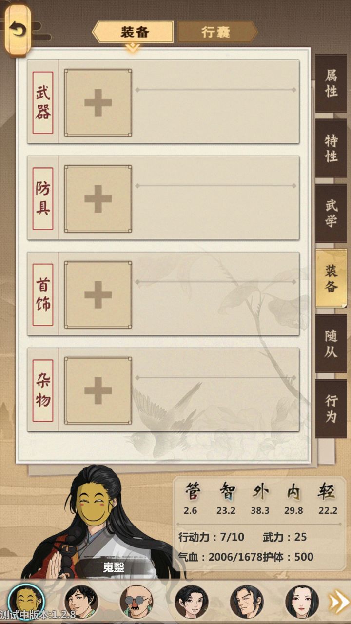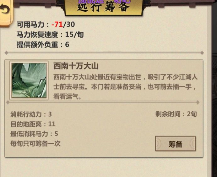 随便吐槽下许多玩家在新手村开了无数次局。很少有坚持到9月的。新手村就是这游戏的梦魇。一个新人进来后遇到各种选择和事件,除了大脑宕机之外。就是拿起手机上论坛,找攻略,删档,sl,烦躁,求存档。。增加下智力系统,上来选习文和管理的。遇到事件起码给个火攻下毒之类的让boss弱化。不然清一色莽夫,对得起设计了众多的身世和那些多周目换来的传承点?传承点和多周目这模式。我接触的大多是日系黄油。。。起码有