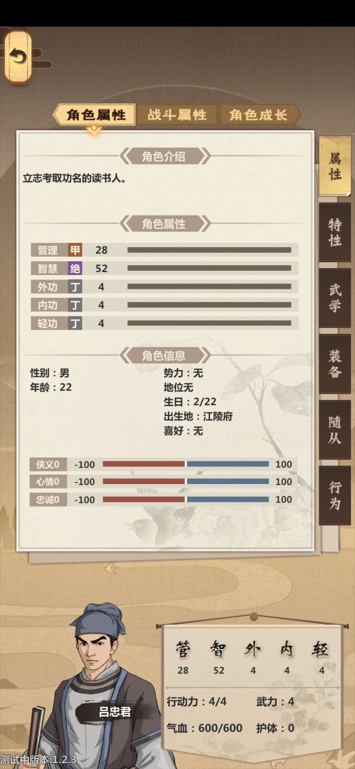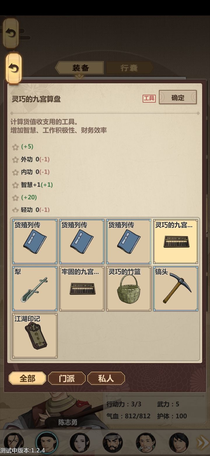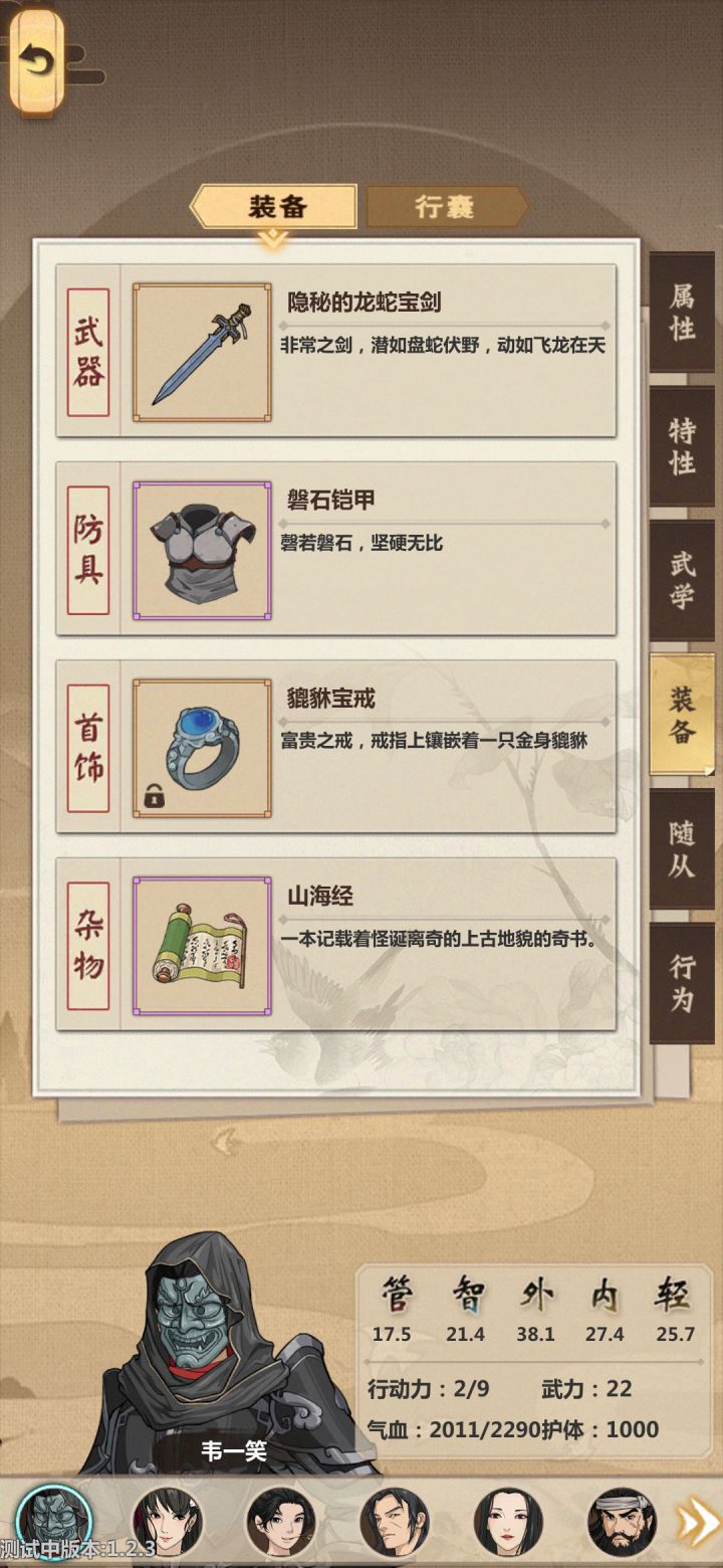 emmm这些是我想到啥就写啥的,有点散乱,谅解一下1.选弟子去工作的时候那个选择栏能不能点击一下,然后显示他的全部属性和技能(就是工匠3啊啥的)特别是去工坊药坊的时候,一定要显示出来工匠3什么的,我真的记不住啊。。。。人太多了。。。2.尽快修复一下人物放了技能有记录乱跑的bug吧,虽然他乱跑的时候伤害全躲避了,但是,我的随从死光了啊,死一个弟子要赔20补偿金啊,前期有点心疼。3.每次行侠后的