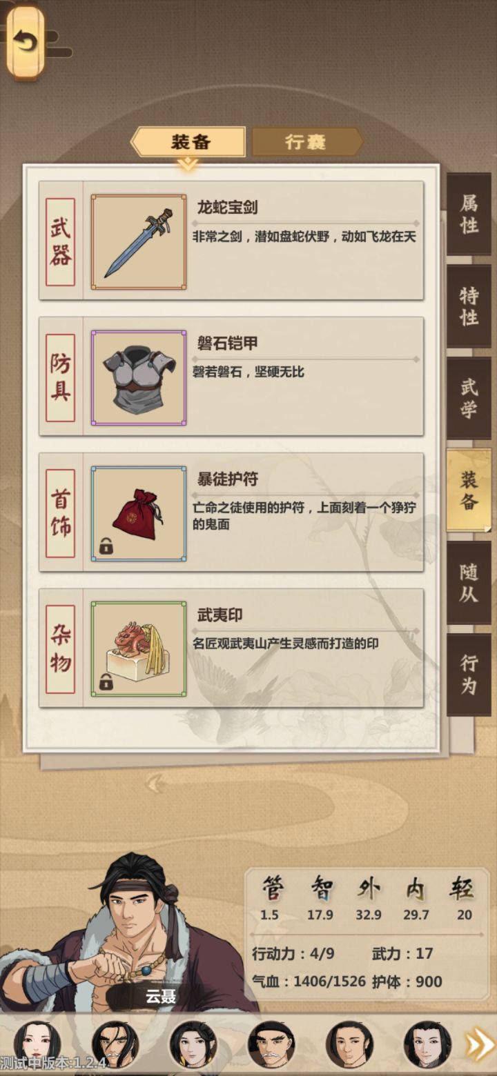 1.希望能够多出些功法,不然手上一堆棍子,匕首,鞭子,盾牌什么的都没有配套的功法2.希望可以手动选择攻击目标,不然有时身边有个敌方弓箭手,却跑去一个位移技能外的打敌方的战士3.在战斗场景中有时会出现因为人物尸体以及场景障碍物等因数产生的移动鬼畜4.更换装备时,有大概率出现图中情况,会出现迷之属性5.希望可以将敌我双方血条显示在人物建模头上6.希望在出现任务和分配差事时能把所需要的属性如轻