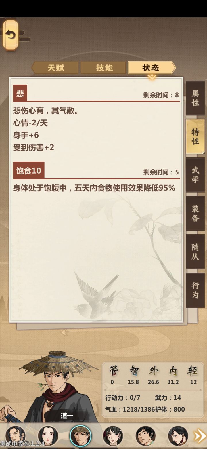 感觉最喜欢的还是新手村这种一天内自由安排获得相应收益的模式。有没有考虑借鉴《河洛群侠传》的模式,设计成“一天自由活动”——>“管理门派”——>“一天自由活动”……的模式,比如三月二旬可以改成玩家被要求去河洛帮给个说法之类的,然后在河洛帮自由活动一天,碰到各种事件,包括收买各种人,增加最后谈判时的筹码。再比如五月二旬的挑战可以改成被认为有潜力的门派被统一邀请到一个地方(或者城市),然后一天自由活