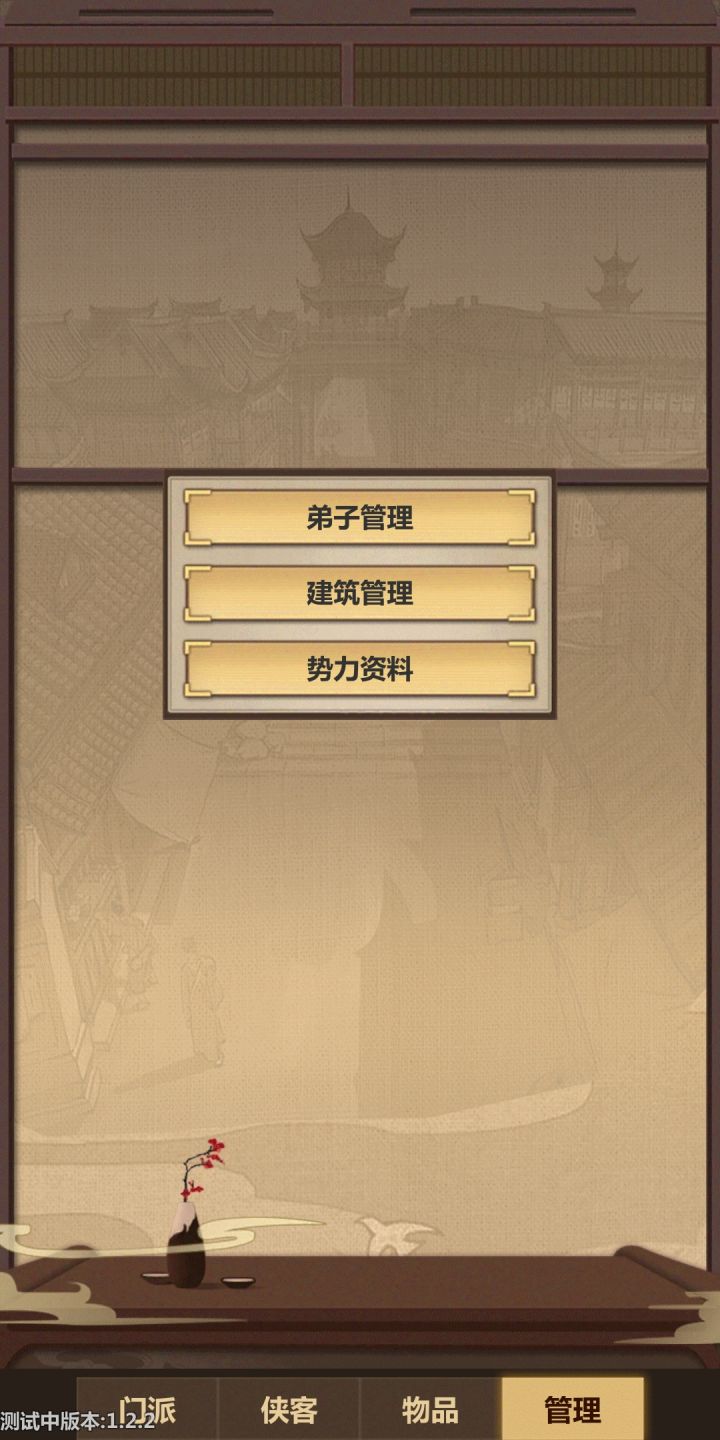 初次体验游戏的时候有些无所适从,因为知道这是一款经营为主的掌门类游戏,所以体验了一个上午还在新手圈转悠的我有些懵圈,不过上手之后的确别有一番风味。这是我接触的第一款经营类的武侠游戏,以掌门的视角接触江湖,绝对是一种不一样的体验。唯一遗憾的是游戏正处在测试阶段,此时的游戏内容大概只是冰山一角,许多有趣的玩法正在等待官方与玩家的发掘。下面是我对这款游戏一些看法与建议:首先是侠客招募模式,长时间的S