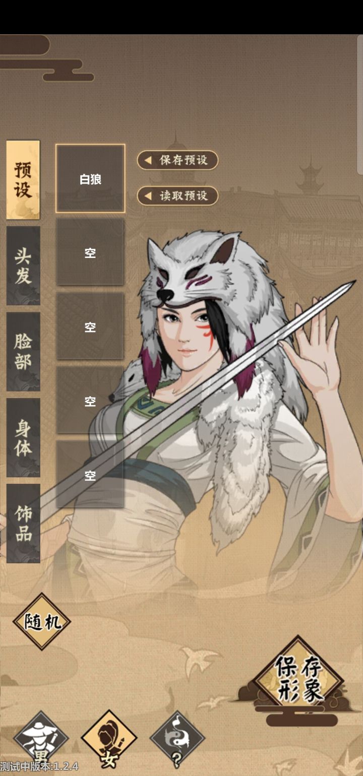 二周目就捏了个女性体验一下,女性还比男的多一个好处,新手村可以去唱戏,还有大佬给赏钱。不知道大家知不知道幽灵公主(电影)?我觉得挺像,我一看到白色的狼帽子,就试着把它捏出来了,如果手中拿的是长矛就更好了,可惜莫得