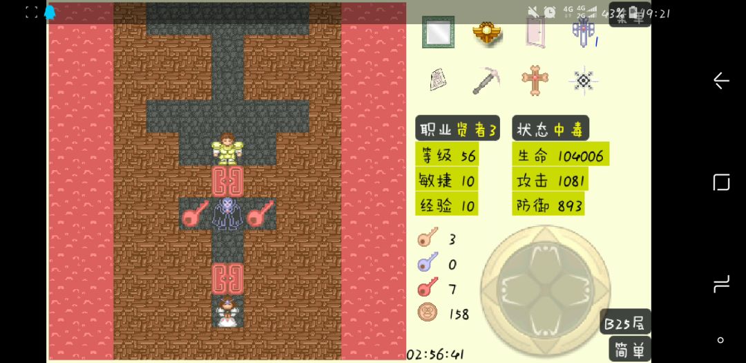 普通模式,按照传统(50层)套路,钱大多数点攻击,实在撑不下去买两回血和防御,经验全点升级。一路很顺。打到B15左右突然发现打不过了,然后,哦,20级的时候500可以买增幅器....这个时候已经40级了,买了之后又是一路推过去...没看过广告积分怪物钱和经验的比率是10:1,感觉数值有点失调了...敏捷值(暴击,miss)的引入应该是想给游戏一些变化,但也没什么太大的变化,玩家能拿到的敏捷很少,打