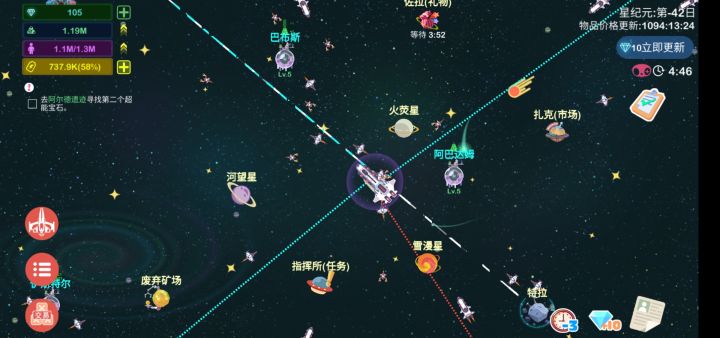 2. 能量值的来源只有货物兑换有点太单调了,希望增加其他来源,比如所占领星球可以开采能源,或者礼物包送能源。目前来看,用货物兑换能量效率太低了,甚至打破了购买的平衡,玩到后面我都是等到快耗尽能量了直接点钻。
