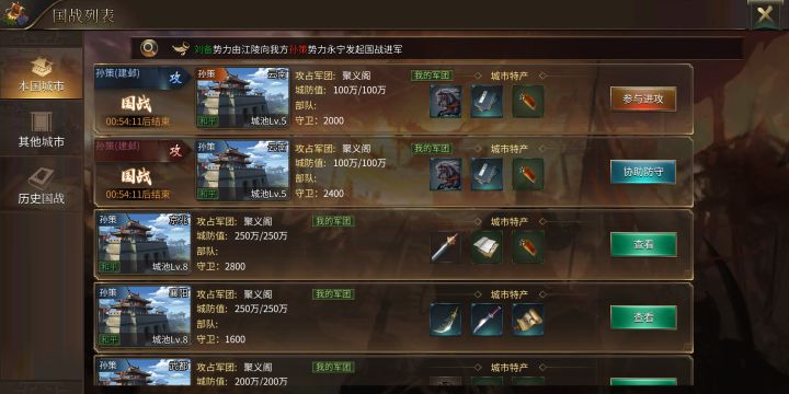 第一问题,参加了三次国战,为啥只有一次的奖励?你们再看看下面,只有一次奖励?谁知道啥原因第二个问题,在看看下面防守活动,啥都没有?是BUG嘛第三个问题,三个国家,看看你们设计的下面这个东西我想抽其他国家的就不行嘛?建议你既然设定是本势力的,就一个势力只能玩一个势力的将,列传其他势力只收集,三个国家共享将只有群雄,不然你在看看下面,这么多国家你的列传要猴年马月才能做完?一个将+1就是新列传