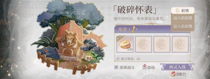 一个提醒就是每个男主剧情最后一节根据选择不同会获得不同的道具,最后一节是剧情和战斗结合的那种注意!!!获得第一个道具以后不用再打第二遍也是可以获得第二个道具的!!!以艾因线为例,看到右上角剧情,再点战斗后剧情,到选项那里给10个体力就可以拿到第二个道具啦!(为了省这8体力我也是够拼的,虽然第一次没省成功就是了)