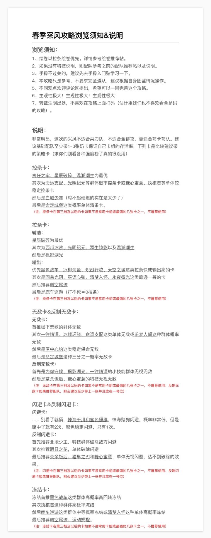 功能卡yyds!1.执棋者主要用一技能,冷冻功能把敌方冻住一回合。2.静心阅读同上,一技能冷冻敌方主力“司岚冕下”,二技能给奶卡保命。3.秋千乐园。奶卡,一技能免伤,二技能少量给我方减伤,大招回血+加快特技进度。4.鹿车巡游。主要用一技能反弹敌方伤害。“反弹敌方反弹的伤害”5.责任之牢。一技能禁止一敌方使用特技+我方防御。二技能降低敌方特技进度,减少我方血条压力。6.匣中心约。一技能和