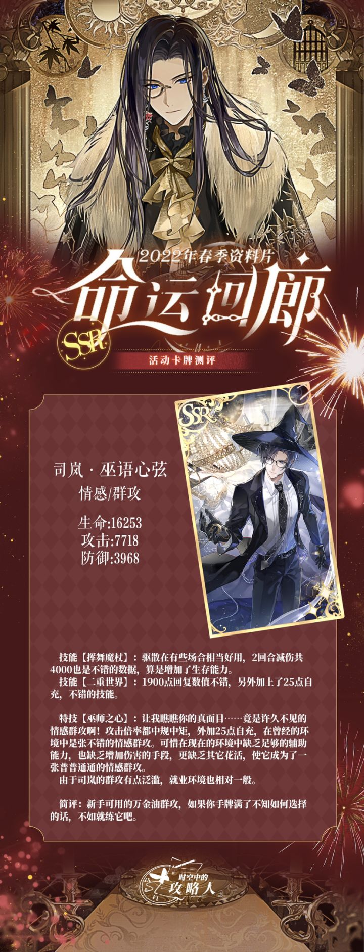 【司岚常驻累充·巫语心弦·SSR画灵解析】「水晶球可以窥伺时空、记忆,以及不能宣之于口的秘密。」魔法与魔术的区别,是一个有趣的话题,高深的魔法就像新兴的科技,让人着迷,无法相触的时刻,希望它能带给你我的思念,枫叶寄情,魔法寄心。表演魔术的司岚,使用魔法的冕下,这张的信息量好大!小画家们去一探究竟了吗?