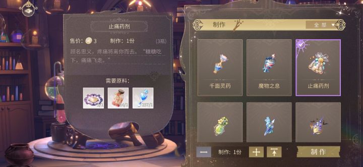还有一种因为篇幅限制发不上来,我直接说配方。黑夜长存,月长石加两个大红瓶。其他的配方练出来都是废渣。然后我今天去打了新的材料,但是低级炉子不能用,所以那些药材应该是高级炉子才能炼药,等我升级了马上来发攻略姐妹们。(*'▽'*)♪