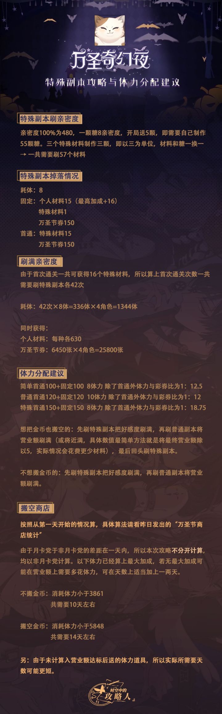 中午好,攻略人又携大白来提醒大家吃午饭了呢大白:“喵~” 万圣第二天,游戏内更新了新关卡、新剧情和新玩法,不知道大家有没有参与呢?经攻略人计算,新关卡对大家搬空商店,更加划算啦请看个人关卡特殊副本 体力分配建议