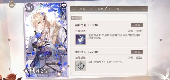 ssr就不说了,反正初始数值高,养就完事。1.荆棘之笼内测的冰蝶爸爸被削成了单体,但是单体无敌,其实r卡星之愈也有。然后上图这张卡,表面全体闪避,实际全体无敌。我本来以为闪避是概率的,结果是必定闪避。闪避跟无敌的区别,仔细翻了翻,闪避不能闪一些词条带必定命中的技能,无敌会被一些词条带破除无敌的技能打到。两个都不免疫毒伤流血这些回合后伤害,而且理论上都属于增益,可以被驱散。(比如艾因的那张囚笼