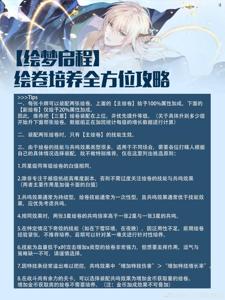 搬运/自用——绘卷培养攻略入坑十几天的萌新,半个强度党+叶推。喜欢照着攻略玩游戏,避免走弯路。跑到微博扒拉了一些攻略,基本来自一个名叫打蝶攻略组的博主,虽然这个攻略组已经解散,但还是说明一下。因为之后我可能会出一些数据类的攻略,或许会用到她们的数据,到时候也会标注说明的。图都是去年或者前年的,可能会稍微过时?反正不用迷信攻略,当作参考就好。以及,XP养成才是yyds!