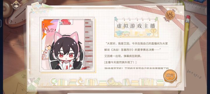 艾因这是跟游戏过不去了啊,第一结局是职业选手,因为游戏天赋不行,含泪退役,默默当起了虚拟游戏主播,来解说游戏,好家伙,不亏是你