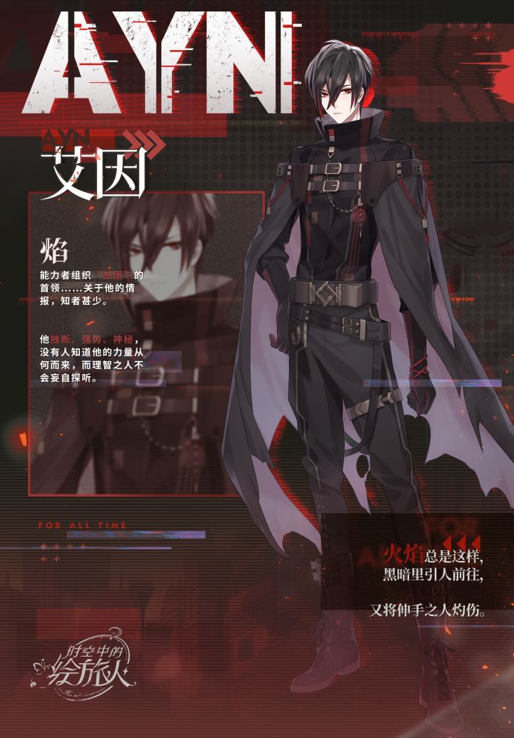 大家好,这里是《时空中的绘旅人》运营团队。我们作品共有五位主要角色,分别是:艾因、路辰、罗夏、司岚、叶瑄。今天和大家分享的角色印象是——艾因,配音老师是阿杰。目前游戏预约已经开启,欢迎大家关注预约。官方微信:时空中的绘旅人官方微博:时空中的绘旅人官方1群:620876994官方2群:734362113官方3群:744383108
